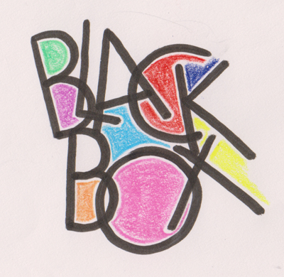 Done with a Zig Writer bullet tip, then colored in with Prisma colors leaving a white border between the color and the letter. We were asked to intermingle our letters which we first did on our practice paper, then copied or traced the letter in the position we wanted for our piece. |
