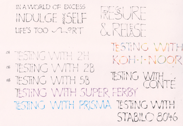 This was supposed to be an exercise for the next day, but some of us were a little more exuberant and wanted to try it already... The sample was done with powdered graphite blended in to the paper and then the letters were erased, then strategically highlighted/accented with a pencil. Not necessarily at the shadow points. |
