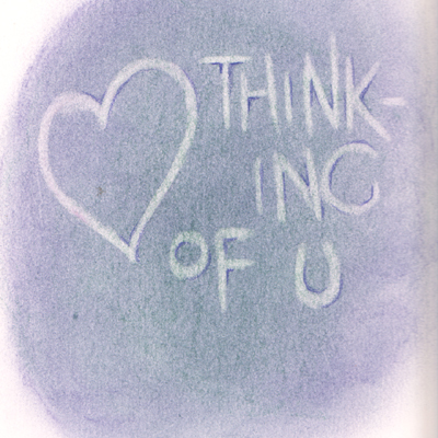 This is what's called "Blind Embossing" where you take a stylus and do your letters on your paper, but since it's not a pen, you don't actually see the letters. Its creating a channel so the colors you apply next will make the embossing stand out. Done with Prisma colors |
