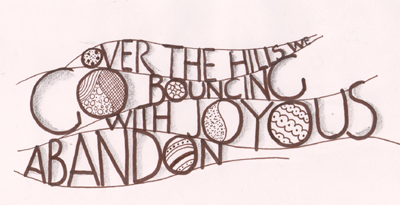 This sample was an exercise of writing between wavy lines and then coloring or whatever. I decided to do a simple piece using a brown Zig writer and the bullet tip - but very gently so it wasn't too fat, and then just do some doodling within the larger letters. I then accented some of the letters with some pencil shading. I love the look of this piece. |