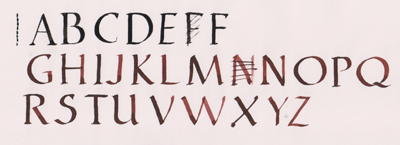 Something else was adding serifs on the Romans done with a broad edged pen. Many calligraphers draw in their serifs. I tried doing them as part of the calligraphy stroke. It was a fun exercise.