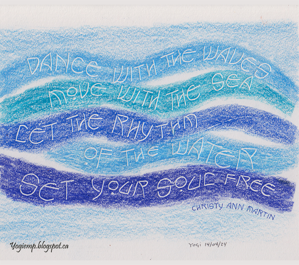 ID: Art Nouveau - Dance With The Waves - Dry Embossed On Canson Mixed Media paper using a Sizzix 2mm embossing tool scribed my words, then with the flat of my Posca colored pencils colored the waves in various blues. words: |
