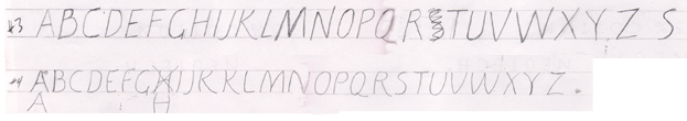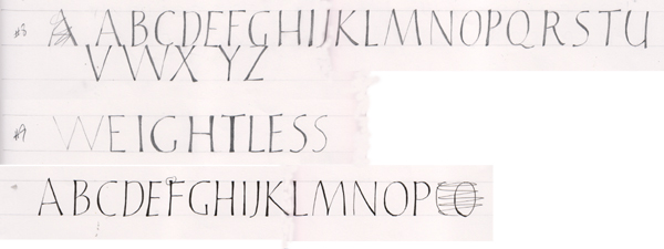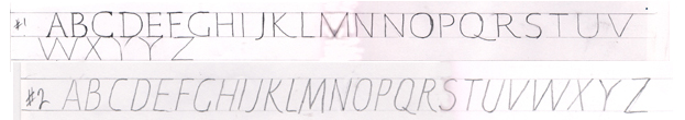 #1: We went through a pile of exercises, starting with creating a skeleton alphabet using a sharpened or mechanical pencil. #2: Then we went on to squeeze the letters so they all more or less fit into a rectangle. We also sloped the letters 5 to 10º |