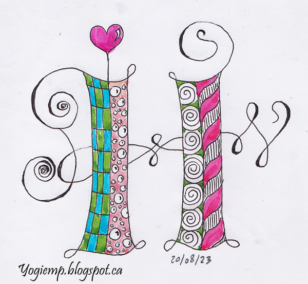 I LOVE Kathy Milici's calligraphy artwork and she's been posting some wonderful capital letters for one of her upcoming classes... She created an "H" similar to this and since it's one of my initials I thought I'd create one as well... Done on Canson Pro Marker paper using Juice Up pens and Clean Color brush pens.