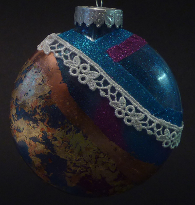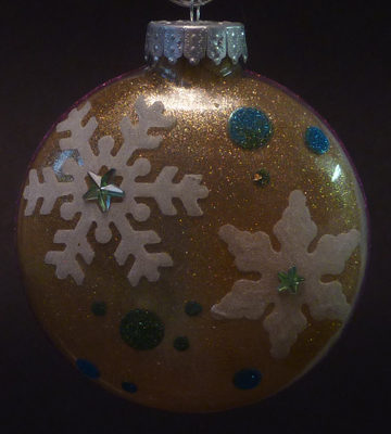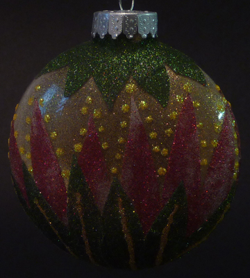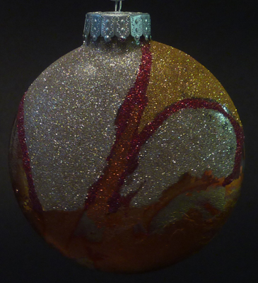 Created: October 11, 2010 I purchased these flat Xmas Ornaments from a major crafting store recently. They all use Ritz micro fine glitter in some way shape or form. I love the back of this one, it just has such an organic feel to a basically non organic item. |