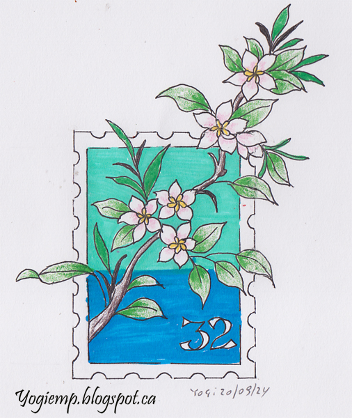 Created: September 22, 2024 Size 3.5"w x 4.5"h I've been playing with creating postage stamps, Not sure why... but having fun anyway... On Edge Mixed Media paper using a Juice Up Pen. Colored the background with Posca pens but didn't like the color of the sky... so changed to the blue and now it looks like a water and sky background. I kinda like that. Not my original intention... The rest was colored with Black Edtition colored pencils.