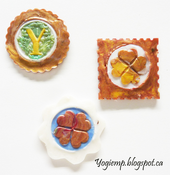 Created: Sept 25, 2024 Got my initial Y yesterday and so had to try it out... and I love playing with my 4 leaf clover. I like playing with multiple colors but it is fussy and time consuming... and I love playing with the mixes of melted wax. I just throw all my scraps into a pile and melt. Especially in the clover. That bottom one has red, green, gold, bronze, white and a touch of blue. working with that large postage stamp mold is not easy... round is a lot easier to get wax all around without getting a big bulge in areas or not getting into all the edges. Will find a way to make it easier eventually... |