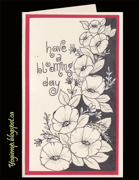 Created: May 24, 2022 I signed up for the Workshop Week 2022 hosted by Becca Courtice on ZOOM This artwork was taught by Shayda Campbell "Floral - No Cut Dutch Door". And again needless to say I didn't use it as intended... Using cream toned Staples cardstock, a .08 Micron pen and a Brush pen for the larger areas. Adhered to a red cardstock then onto a cream card base. Calligraphy with the Micron pen |