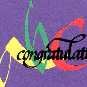 I used Inkscapes for the vectoring program and Sure Cuts A Lot for the downloading to the Cricut machine. The letters "abc" I did calligraphically with a 6.0 Pentel Parallel pen with Sumi ink. Scanned it in color and converted it to a black and white image and added maximum contrast. Fixed a few things in the image with the brush feature or the eraser. Saved it to a BMP image. Opened it in my Inkscapes vector program and defined the lines. Saved it to an SVG file extension and opened that up in my Sure Cuts A Lot software. Sized it to what I wanted approx 1.25" x height letters. Cut it out from 3 colors of paper. The grad cap is an outline image I found, which I filled and inverted etc, then manipulated and saved as above. Cut from some light weight black cardstock. Adhered all these elements to a purple cardstock.