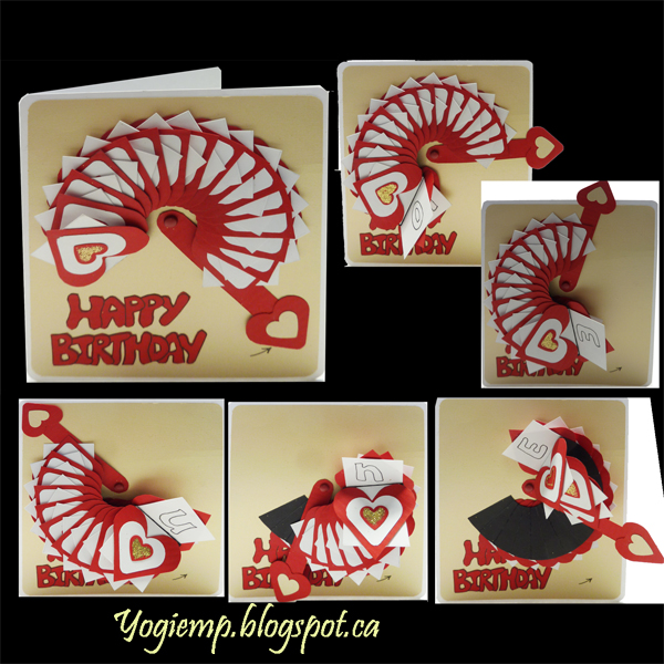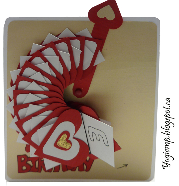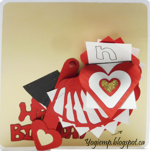 - HB Created: January 25, 2026 And another spinner card... I think I'm addicted to them... You can see an other one HERE The mechanism is a the black circle scored to create 24 sections and a 1.25" circle in the center, then 7 sections cut away including the small center circle. Accordion folded both ways to make the mechanism very pliable. (the 1st section will be glued to the card base at the end of construction). I adhered white squares, then a largish hand cut red heart to each, and then punched out white hearts and then the small punched heart which I added glitter to (some like the heart on the front and some just as an outline of a heart. This was mounted to a gold textured cardstock and then onto my white card base. On the underside of each white base I wrote out a single letter to read "LOVE U BUNCHES with a glittered heart separating the words. |