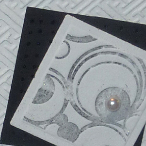 My main card is a bright red, then a layer of black, then the white layer which was dry embossed using the Cuttlebug Oriental Weave from the Asian Bundle set #2000011. For the patchwork squares, I die cut the white with a Spellbinders square die, then put the die and cardstock die cut over the Circles Impressabilities which I first inked up with Distress Black, the through my machine again then thermal embossed it with clear embossing powder. The design came out a greyish tone which I'm very happy with. It didn't overpower everything. I used the same die and cut my black square using the outside edge of the die. Adhered them to the card, skewing them. I then added polka dot glue points and sprinkled with black Ritz micro fine glitter. Gave it a subtle bit of pizzazz. I wrapped a lace white ribbon and a black lace edged ribbon around the black & white layers and tied a bow with the black ribbon, then attached my flowers. I also added a red butterfly eyelet. I stamped the sentiment with Versafine Black Onyx, then die cut it with Spellbinders Fancy Tag and sponged some Distress Fired Brick around the edges. Adhered it to the card with two tiny diamond brads that I thermal embossed with black embossing powder (didn't have any black brads). As a final touch added various sizes of white half pearls. |
