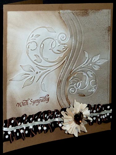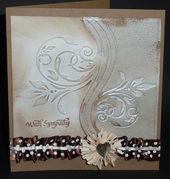 Created: December 9, 2012 I got this Couture Creations embossing folder the other day and really loved it, so much so I created 3 cards with it... You can see the third card HERE. The Sympathy card was the first one I made. And I'm using one of the 10 Tiny Sentiment stamps from Quietfire Design..