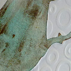 This card is a top folded card. I stamped my quote with Versafine Black Onyx and then embossed around it with a Cuttlebug "Circle & Dots" embossing folder using my machine for part of the embossing and then my rubber mallet for the smaller areas. Die cut the letters (Sizzix Tim's "Word Play" alphabet die) from a piece of decorated cardstock and adhered to card. The teapot was plain white which I sponged Distress blues and some brown shading, then applied a layer of Distress Crackle "Rock Candy", when dry sponged Gathered Twigs into the cracks and wiped the excess off with a damp paper towel. The fuchsias I made at the quilling session and just added some punched out leaves. |