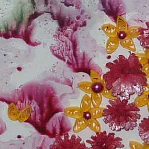 Created: July 7, 2012 I absolutely love this piece. When it came of my craft sheet I was in awe. All I added to the image was some quilled flowers in the foreground I'm using one of the 10 tiny sentiment stamps from Quietfire Design |