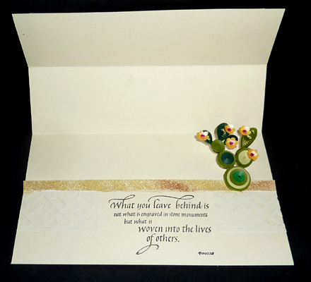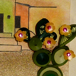 Created: June 3, 2012 I had made the cactus on the left at my last quilling session so thought I'd try using it... It was put into a quilled pot which made it too thick for a standard card, so cut it in half... I'm using quote stamp from Quietfire Design