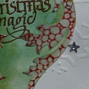 embossing. Using a green with gold edging ribbon, adding silver star brads in 2