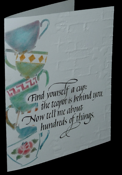 Created: February 17, 2013 And this is the 2nd card I'm making for the Dreamweaver challenge... "CAS Friendship or Love". I absolutely love these cups "LL493". I got them in the horizontal version too, but that's for another card BIG GRIN. I'm using one of my favorite stamps from Quietfire Design - I love this stamp, it just speaks to me. It's one of the first things I say to friends when they come over to my place... Sometimes it's tea and sometimes it's coffee... "Find yourself a cup..." |