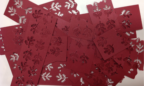 Created: November 15, 2013 at our last quilling session one of my friends was die cutting stuff for an upcoming class she was doing. When she was done cutting, she started to throw the waste at left in the garbage... I asked for it and she handed it to me. BIG GRIN. Had no idea what I was going to do with it, but I just couldn't see it going in the garbage. I'm using various Xmas Quote stamps from Quietfire Design