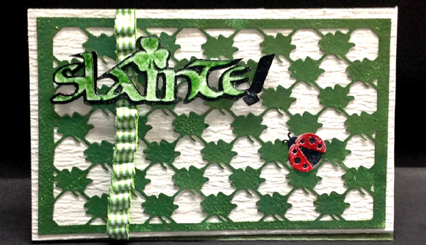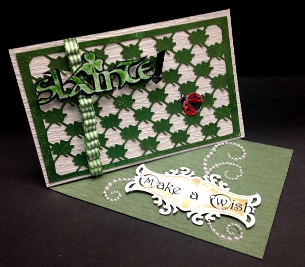 Created: March 7, 2014 I'm really liking my shamrock Lattice border I created, this time for a landscape card. I'm also using an eCut file (Slainte) created by Quietfire Design and can be found on the Silhouette OnLine store HERE. The shamrock lattice background is available as a jpg image, SCUT file (for SCAL - Silhouette), Studio file (for Silhouette), both portrait & landscape mode. If you don't have a Silhouette machine or either of these software programs, you will need to have the capabilities of changing it to an svg file & or uploading it to your cutting software. contact me here to get the lattice file |