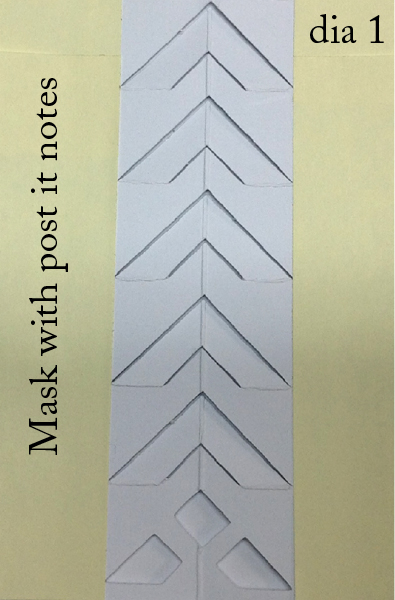 shows the score lines, after eCutting mask with the post it notes close to the cut edges |
