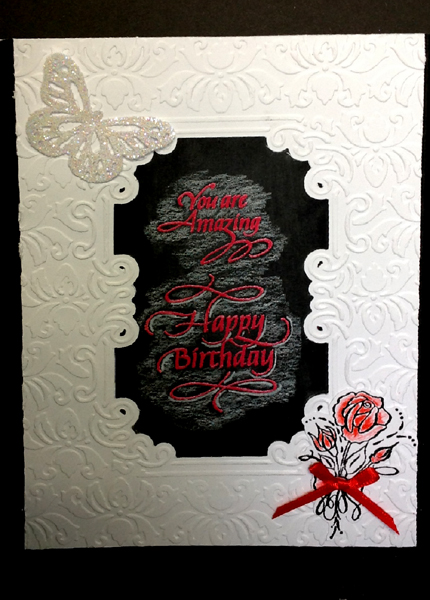Created: April 9, 2014 I've been getting in to using this Cuttlebug cut/emboss die folder lately - it's an oldie but still a goodie. BIG GRIN. I'm using a bunch of sentiment stamps and the rose bouquet stamp from Quietfire Design