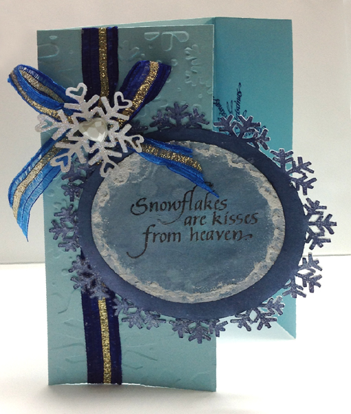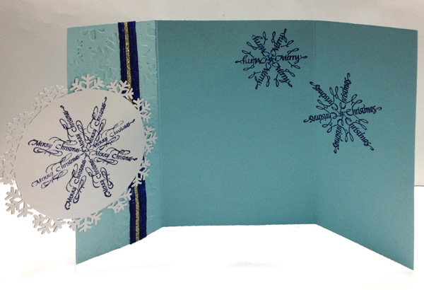 blue cardstock. Card is scored (left side at 2.5") and (right side