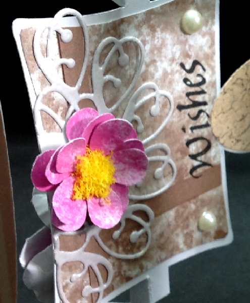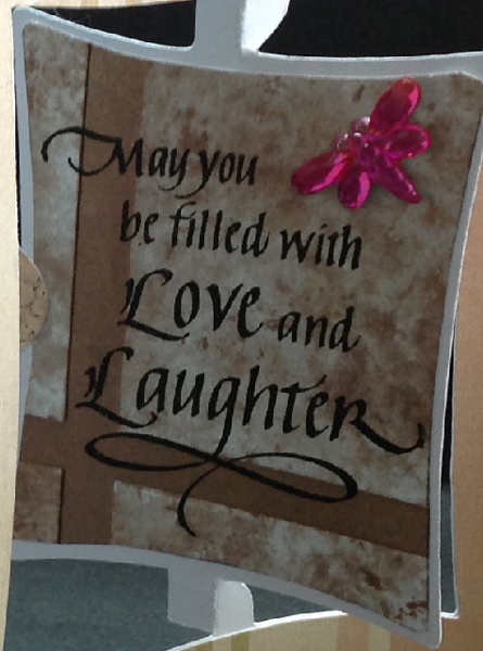 I eCut all the elements for the swing card from white cardstock and scrapbook papers. adhered and assembled everything. The connecting pieces this time are Spellbinder's ovals instead of chain links. The flourish heart pieces are die cuts (Memory Box) which I had laying on my desk, cut from white cardstock and then I embossed with Pearl White Lustre embossing powder. Trimmed down. The flowers are again white cardstock which I swiped a Distress pad "Picked Raspberry" over it, then punched (EK Success) out the floral shapes. I used a large balled stylus and some craft foam to shape the petals, then adhered 3 of them together at the center. Added a large glob of white glue and pressed Flower Soft "Sunshine Yellow" to the centers. Stamped the various words/quotes with Versafine Black Onyx. eCut the HB2U letters from white cardstock, colored with black ink and embossed with black embossing powder. For the front piece I stamped the quote on a precut piece of white Shrink Plastic with the black, punched a couple large holes and heat activated. Used a Krylon Gold Leafing pen on the edges, then adhered this to a piece of white cardstock using Golden's extra heavy gel medium. Attached the small copper brads then adhered it to my card front. As a final touch added some white half pearls and a pink rhinestone dragonfly. |