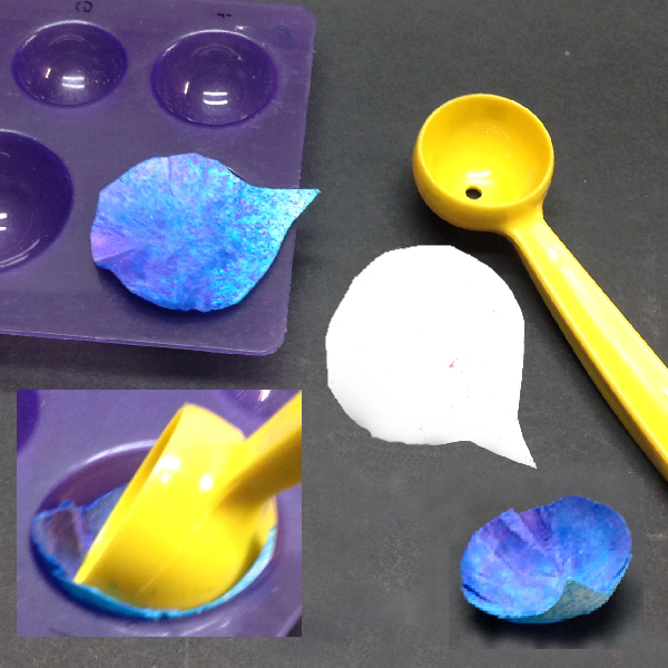 On the floor of the easel I added another piece of the background paper and stamped the quote with the black, clear embossed and added the faux stitching. Added the diagonal piece of ribbon/pearls as a stopper adhering with the glue gun. As a final touch adhered punched out swallows (Martha Stewart) from the right side of the background paper (which was an intense color...) Flower tool details: Quillers will recognize the "Mini Mold" shaping tool from Quilled Creations (purple gadget). The yellow tool is a melon scooper from Tupperware from eons ago... After spritzing the petals, and while still quite damp, shaped them in the tool, pressing and twisting the melon scooper, then set aside to dry. Then adhered using a glue gun onto a punched circle. |