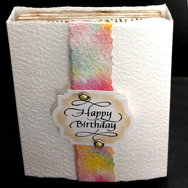 March 21, 2014 Another accordion frame booklet - loving this style... I found on the web a frame made out of accordion folds and was intrigued. I used the St Armand 150# very rough handmade paper again 'm also using a sentiment stamp and a quote stamp from Quietfire Design