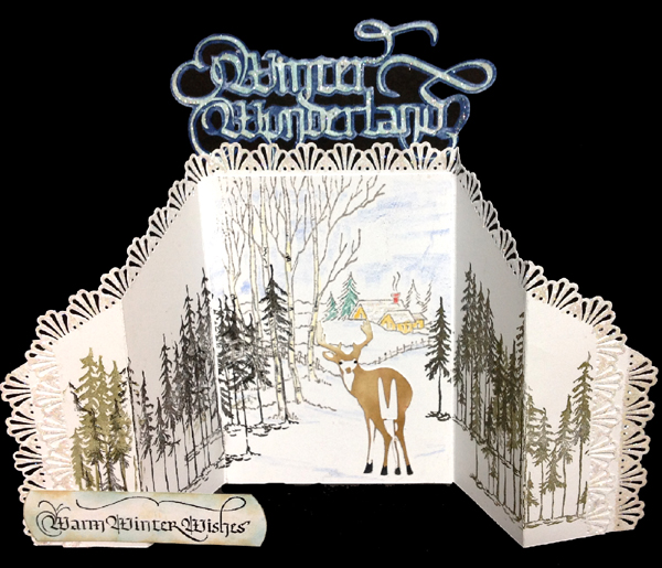 Created: November 8, 2014 Love doing Gate Fold cards... I'm using a sentiment stamp from Quietfire Design and eCut file from Suzanne available on the Silhouette online store. ("Warm Winter Wishes"); & eCut file ("Winter Wonderland" 3 pce set)