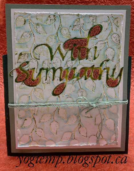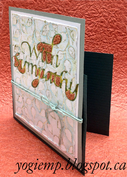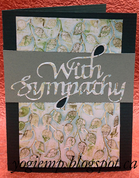 Created: July 12, 2015 Elizabeth Craft Designs (ECD) has been licensed to make dies of Suzanne Cannon's (Quietfire Design ) calligraphy. I received my sample dies yesterday and couldn't wait to use them BIG GRIN. These dies will start being available around the end of July 2015. Today's cards use "With Sympathy" The other dies, embossing folders, Peel offs, glitter & sticky tape, if used are all products from ECD. Both cards use parts of each other... Both cards use the "Curly Leaves" embossing folder.