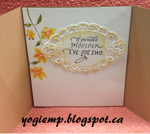 Created: July 25, 2015 Elizabeth Craft Designs (ECD) I'm using an embossing folder from Elizabeth Craft Designs (ECD). Both quotes are by Quietfire Design ("Invisible Tears" ); ("If You Need a Shoulder" updated design );