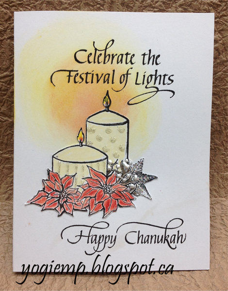Created: November 12, 2015 I needed to make another Chanukah card so using Suzanne's Chanukah stamp set and her eCut file made it real easy... The rubber stamp sentiment stamps are by Quietfire Design ("Happy Chanukah"); ("Celtic Christmas" 5pce set); eCut file: "Happy Chanukah/Menorah" available on Silhouette onLine Store
