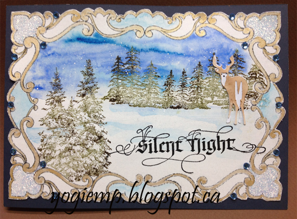 Created: October 12, 2015 I came across this digi frame by Monica Gomez on Pinterest... There was a building scene in it which I removed to create my own scene. The rubber stamp quote & sentiments are by Quietfire Design and the eCut available on Silhouette onLine store ("Silent Night" 2pce set); ("Good Friends..." 4pce set); ("Winter Wonderland" 4pce set); eCut ("Winter Wonderland")