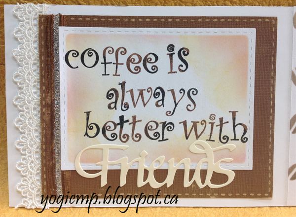 Created: April 5, 2016 As I mentioned the other day, I had eCut a bunch of coffee images and this is the 2nd card. I'm using an "A Way With Words" dies from Elizabeth Craft Designs ("Friends"), designed by Suzanne Cannon (also available HERE). Also using a several other products from Elizabeth Craft Designs "Stitched Rectangles", "Coffee Bean" embossing folder and "Coffee" Stencil. I'm also using one of the newer stamp sets from Quietfire Design ("In A Perfect World" 4pce set);