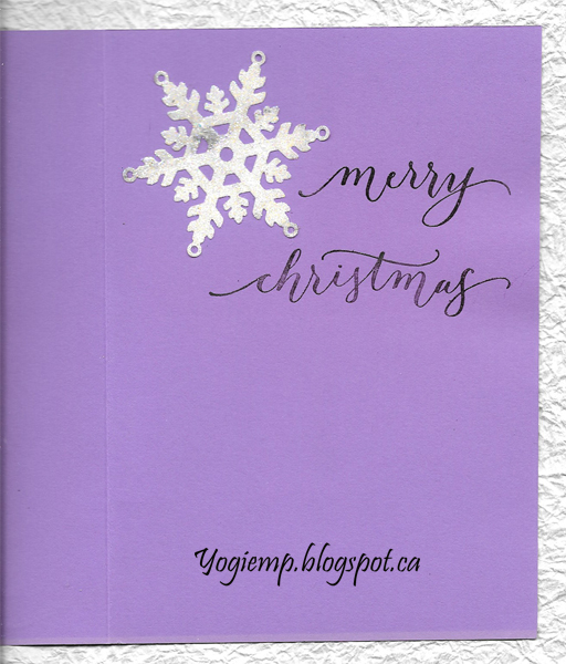 On the inside: adhered a piece of sookwang tape to cardstock, then die cut the snowflake, sprinkled with Stickles dry Glitter "Star Dust" Stamped the sentiment with the black and clear embossed |