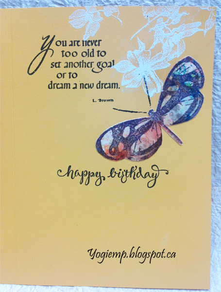 Created: November 20, 2016 I pulled out my Brushos to play a bit and get out of my slump... I'm using an A Way With Words dies from Elizabeth Craft Designs "Dream" also available on Quietfire Design HERE Also using a quote and sentiment stamp from Quietfire Design on the inside ("You Are Never Too Old..."); ("Happy Birthday Plain & Simple" 7 pce set)