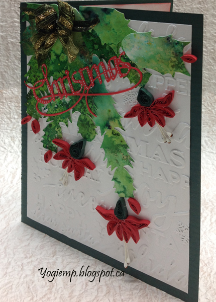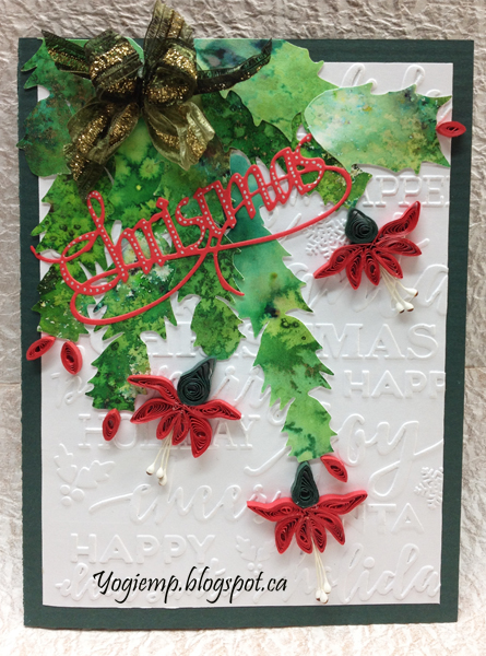Created: September 24, 2016 It's World Card Making Day - Oct 1st., so Quietfire Design is doing a blog hop.... I made the flowers at my last quilling session so decided to use them. Found an image of the Christmas Cactus leaves and created variations in my photo editing program than uploaded it into my electronic cutter software. I'm using an A Way With Words die from Elizabeth Craft Designs "Merry Christmas" 2pce set also available on Quietfire Design HERE I'm using a quote stamp on the inside from Quietfire Design