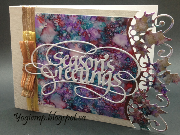 Created: September 2, 2016 I was lucky enough to get a bunch of Kodak photo paper - the kind used in the automatic print machines in Superstore.... So I experimented with it. In theory using photo paper is not good with alcohol inks... but this paper worked beautifully. I think it's because it didn't have the 2nd layer (a thin film) adhered to it - it was the raw glossy paper. I'm using an A Way With Words die from Elizabeth Craft Designs "Season's Greetings" also available on Quietfire Design HERE I'm using a couple quote stamps from Quietfire Design