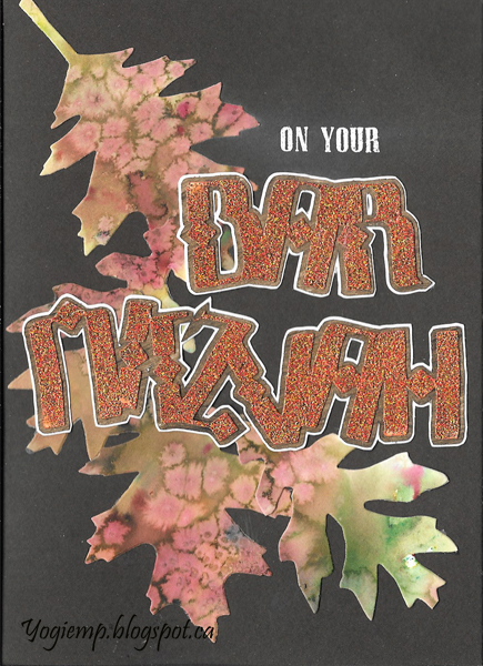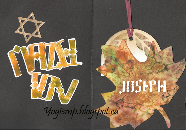 Seems I never wrote down the details to these 2 cards - sigh - so I'm winging it... I drew the words, scanned them and electronically cut the,. Inked and embossed them and then layered them to a shadow layer. The leaves look like Tm's Bigz die. Can't remember the background. |