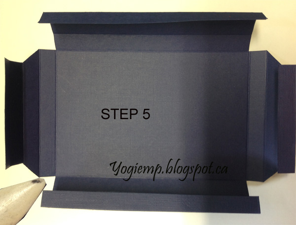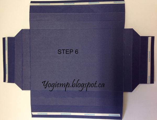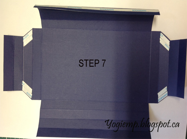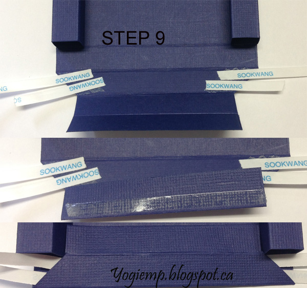 STEP 6: On the right side of cardstock (textured side) Apply Sookwang tape along the score edge of the outside flap. Make sure it's the last one because it hides after being scored (ask me how I know...)