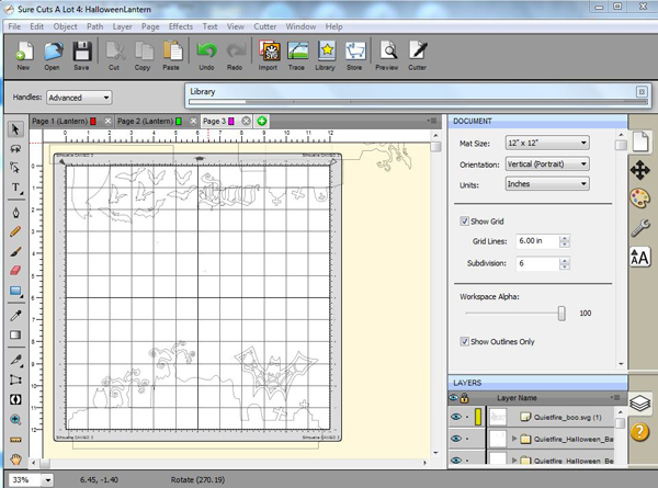 software and opened the Christmas lantern file. It takes about 1 sheet of 12 x