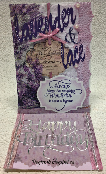 Created: August 5, 2017 At the last session with the gals another friend gave me the lavender themed napkin she brought back from her trip to Italy... Suzanne asked us to use ribbon on cards... I'm using a Sari "Fairy" ribbon as a border - check out the ribbons section at QuetfireDesign.ca I'm using an A Way With Words dies "Calligraphic Elements 2 - Ampersand" & "Happy Birthday" from Elizabeth Craft Designs, also available on Quietfire Design HERE and HERE And I'm using a quote stamp set from Quietfire Design
