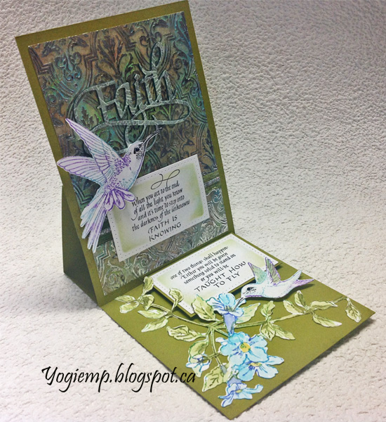 Created: July 15, 2017 I was in a mood to create something with foil... and then I wanted to use one of newest acquisitions - this Stampendous Hummingbird stamp set. I'm using an A Way With Words die "Faith" from Elizabeth Craft Designs, also available on Quietfire Design HERE And I'm using a quote stamp from Quietfire Design ("When You Get To The End...");