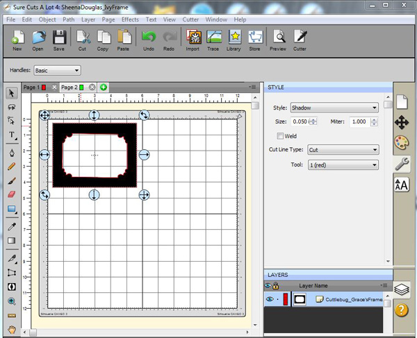 Here I've clicked on the wrench icon, then on the drop down "style" menu and clicked on "Shadow". Left it the original size of .050 Cut from white cardstock. and ran through my embossing machine. |