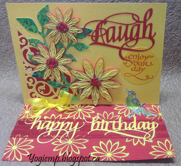 Created: June 28, 2017 And another productive day at the last quilling session... Talk about a bright card... I'm using a couple of an A Way With Words dies "Laugh" and "Happy Birthday" 2pce set from Elizabeth Craft Designs, also available on Quietfire Design HERE and HERE I'm using a sentiment and quote stamp from Quietfire Design. ("Twirl and Enjoy" 3pce set);