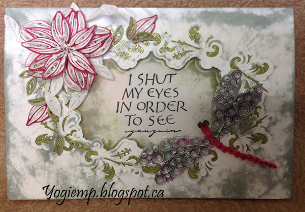 Created: May 13, 2017 And another card during my creative spurt... Most of the quilling was done at my last session with the gals. And using a quote stamp from Quietfire Design, ("I Shut My Eyes...");