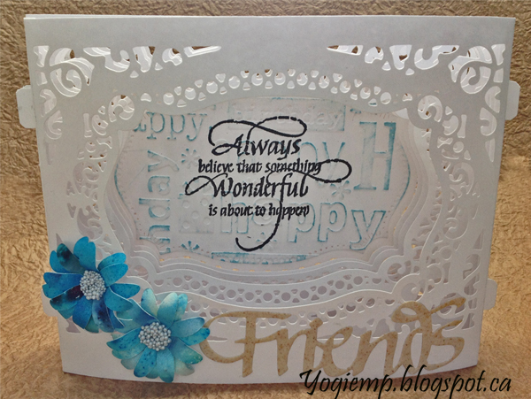 Created: April 8, 2018 Becca Feecan came out with some really nice Spellbinder's die sets to create 3D Vignettes. Sorry Becca I don't have any of those dies yet... I gave the all white one to a friend recently who was celebrating her 80th birthday... and one of my other friends there asked me to make one for her too... also in white, but since I'm adverse to making the same things, I added a touch of color to this one. I so love tht the card lies flat... And I just received a bunch of goodies from Amazon.ca - Spellbinder's Majestic Labels 25. Another beautiful die set... and I thought it would be perfect to create the 3D card for her. I'm using the same principles as Becca's. You can see the all white one I made HERE I'm using an A Way With Words dies "Friends" from Elizabeth Craft Designs, also available on Quietfire Design HERE I'm also using a quote stamp from Quietfire Design which I love...