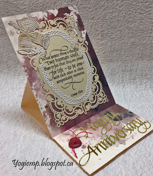 Created: January 16, 2018 I needed to make a sample using a 3D embossing folder in a non Xmas way... I'm using an A Way With Words dies "Happy Anniversary" 2 pce set, from Elizabeth Craft Designs, also available on Quietfire Design HERE I'm also using a sentiment stamp from Quietfire Design ("What Greater Thing - Heart Flourish" 2pce set);