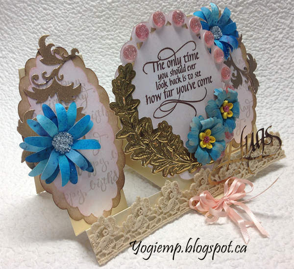 Created: July 27, 2018 A friend made a stepper card using a Tatter Lace die set and I had to try making one on my own.... PS I HATE TOP FOLD CARDS... they always splay flat and don't stand properly. I'm using an A Way With Words dies "Hugs" from Elizabeth Craft Designs, also available on Quietfire Design HERE I'm using a sentiment set and quote rubber stamp from Quietfire Design ( "Happy Birthday Plain and Simple" 7pce set.); ("The Only Time...")